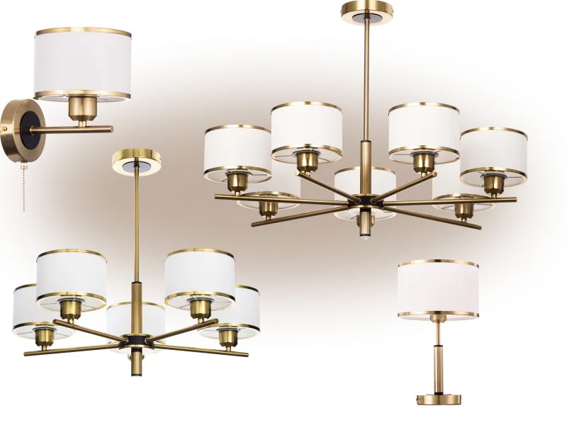 Абажуры созданы в форме цилиндра, белая ткань с жемчужным оттенком сочетается с подложкой из специализированного полимера, благодаря этому модели светят мягким и равномерным светом, освещая пространство комнаты или подсвечивая детали обстановки. Края цилиндров украшены тонкой металлической окантовкой, окрашенной в цвет корпуса.