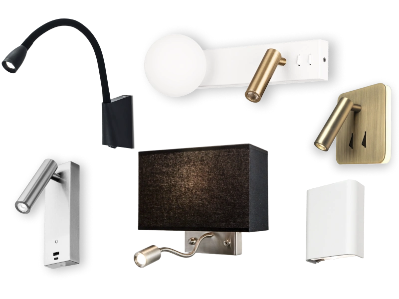 В серии представлены модели с модулем для чтения на поворотном шарнире или на гибкой ножке, с независимой подсветкой стены и USB-зарядкой для гаджетов. Два классических оттенка на выбор: черный или белый.