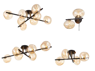Высота люстр — менее 21см, что позволяет устанавливать их даже на невысоких потолках или на натяжных конструкциях. Во всех моделях серии используются лампы с цоколем G9.