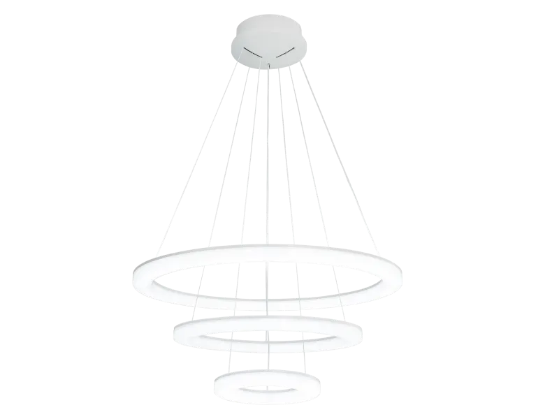Для основного освещения отлично подойдет как умная каскадная модель с тремя кольцами-модулями, так и люстра с одним подвесным кольцом, которая при установке специального смарт-модуля становится умной, позволяя настраивать ее при помощи голосовых команд.