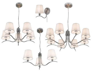 Каркас светильников изготовлен из металла стильного хромированного оттенка, изогнутые рожки напоминают тонкие стебли цветков. Абажуры в форме усеченного конуса — из жемчужно-белой ткани, обрамляющей подложку из полимера с особыми оптическими свойствами, который обеспечивает мягкое, рассеянное сияние света.