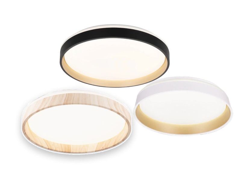 Кроме того, в коллекции также есть светильник диаметром 39см с окантовкой под дерево. Модели диаметром 49см смогут осветить помещение площадью до 21м2, изделия диаметром 39см — до 16м2.