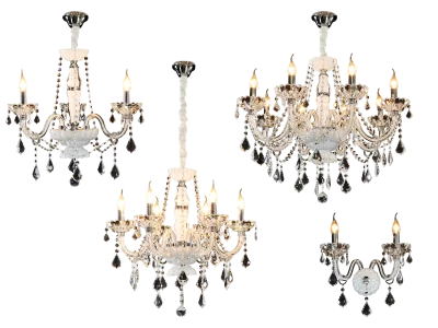 Стеклянный корпус светильников дополняют утонченные прозрачные хрустальные подвески, рожки с открытыми лампами. Для наиболее эффектного внешнего вида рекомендуем выбирать лампочки с колбой «свеча на ветру», с цоколем Е14. Высоту подвесных моделей можно регулировать.