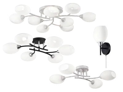 Основу серии составляют потолочные модели разной мощности: на 4, 6 и 9 рожков, дополняют модельный ряд светильники на стену.