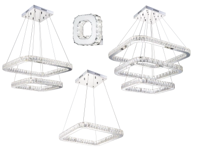 Для основного освещения в серии представлены подвесные люстры на тросах, с двумя и тремя светодиодными модулями и пультом управления, в качестве дополнения можно использовать хрустальное бра.