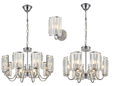В серии представлены модели с шестью рожками, способные осветить помещения площадью 12-18кв.м., а также светильники на восемь рожков, рекомендуемые нами на комнаты от 16 до 24квадратных метров. Помимо люстр, в коллекции присутствуют изящные настенные бра, а в качестве приятного бонуса мы всегда сможем вам предложить идеально подходящие решения из нашей линейки Синди, с аналогичной огранкой хрусталя, в виде прикроватных ламп и напольных торшеров.