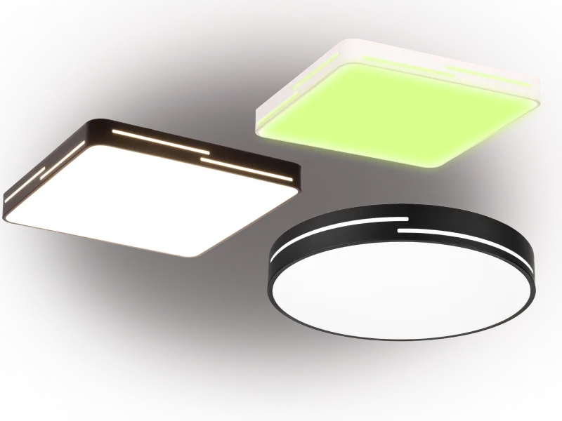 В коллекцию водят квадратные и круглые накладные светильники двух цветов: