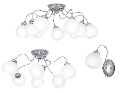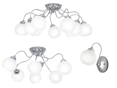 На выбор представлено два потолочных светильника, на 6 и 9 плафонов, а также элегантное бра.