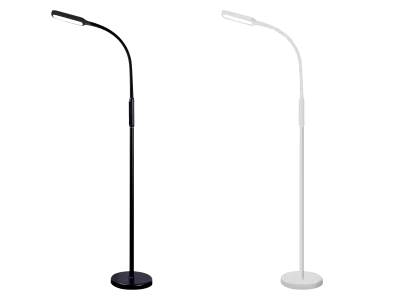 Основание торшеров изготовлено из ударопрочного полимера, металлическая стойка состоит из трех элементов, что позволяет собрать торшер разной высоты. Поменять высоту можно в любой момент. Торшеры легкие, но при этом устойчивые. На выбор два строгих оттенка корпуса: черный или белый.