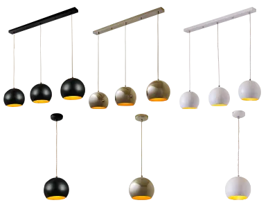 Каркас из металла, плафоны имеют форму усеченной сферы диаметром 18см. Строгие классические оттенки (черный или белый) смягчает стильная деталь: внутренняя сторона плафонов окрашена в золотой оттенок, что придает освещению мягкую, теплую атмосферу.
