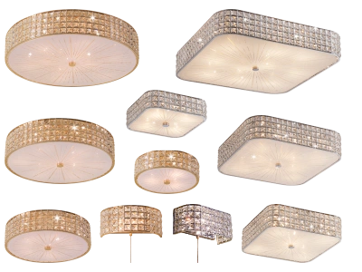 Обширный модельный ряд коллекции открывают LED-люстры круглой формы с пультом, мощностью от 48 до 105Вт. Кроме того, есть круглые модели на 3, 5, 8 и 10 лампочек, и квадратные варианты на 4, 6, 8 или 10 лампочек. Дополняют серию полукруглые и прямоугольные бра, рассчитанные на две лампочки.