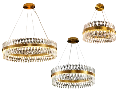 Основную часть коллекции занимают круглые светодиодные люстры с хрустальными элементами, диаметром 60, 80 и 100 см, мощностью в 80, 100 и 130Вт соответственно. В дополнение к ним идет элегантное бра.