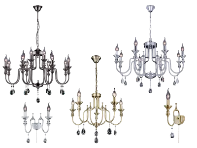 Основным освещением вашего дома или квартиры послужит элегантная подвесная люстра на 5, 8 либо 12 рожков, а дополнит интерьер стильное бра с одним или двумя рожками.