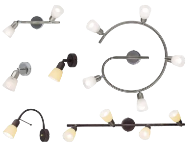 Во всех моделях используются лампы с цоколем Е14. Одиночные светильники оснащены выключателем на корпусе.