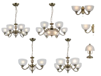 В настольной лампе, а также в центральном плафоне большой люстры используются лампочки с цоколем E14, в других случаях — с цоколем E27. Изделия коллекции Citilux Севилья CL414 можно использовать как по отдельности, так и в сочетании друг с другом, а также с другими светильниками, подходящими по стилю и по назначению.