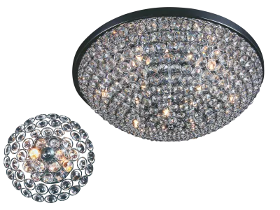 Основание изделий металлическое, несколько рядов хромированных колечек образуют ажурную полусферу. Внутри каждого колечка закреплен прозрачный хрусталик, хрустальные кристаллы причудливо преломляют свет, рассыпая по комнате мириады радужных бликов.